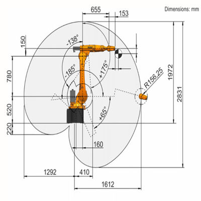 KR16 R1610-2 น้ำหนักบรรทุก 20 กก. ถึงแขนหุ่นยนต์เชื่อม 1612 มม 4