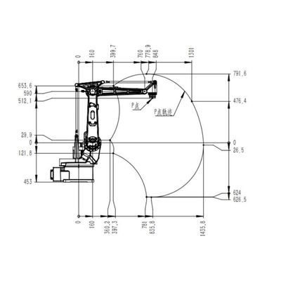 ภาพวาดแขนหุ่นยนต์ 6 แกน TKB4600-12KG-1435mm สำหรับการทาสีเป็นหุ่นยนต์ทาสี Painting 6