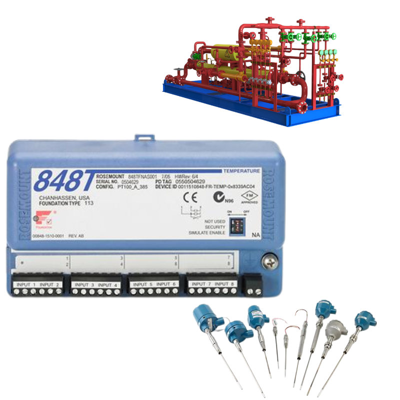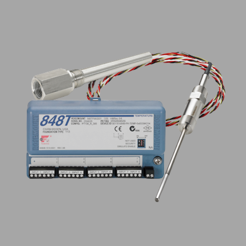 โรซมอนท์ 848T เป็นเครื่องส่งอุณหภูมิที่มีประสิทธิภาพสูง 2 สายจากเอเมอร์สัน ผู้นําในเทคโนโลยีอัตโนมัติกระบวนการ It is designed to accurately and reliably measure temperature using a variety of RTD (Resistance Temperature Detector) or thermocouple inputs and transmit a standardized 4-20 mA output signal or a digital signal via the HART® (Highway Addressable Remote Transducer) protocol to a control system, เช่น DCS (Distributed Control System) หรือ PLC (Programmable Logic Controller) ในฐานะองค์ประกอบสําคัญในภูมิทัศน์เครื่องมืออุตสาหกรรมที่ทันสมัย848T ถูกออกแบบมาเพื่อความมั่นคงอย่างพิเศษ, ความทนทานและการใช้งานที่ง่าย ผ่านการใช้งานที่ต้องการอย่างมากมาย